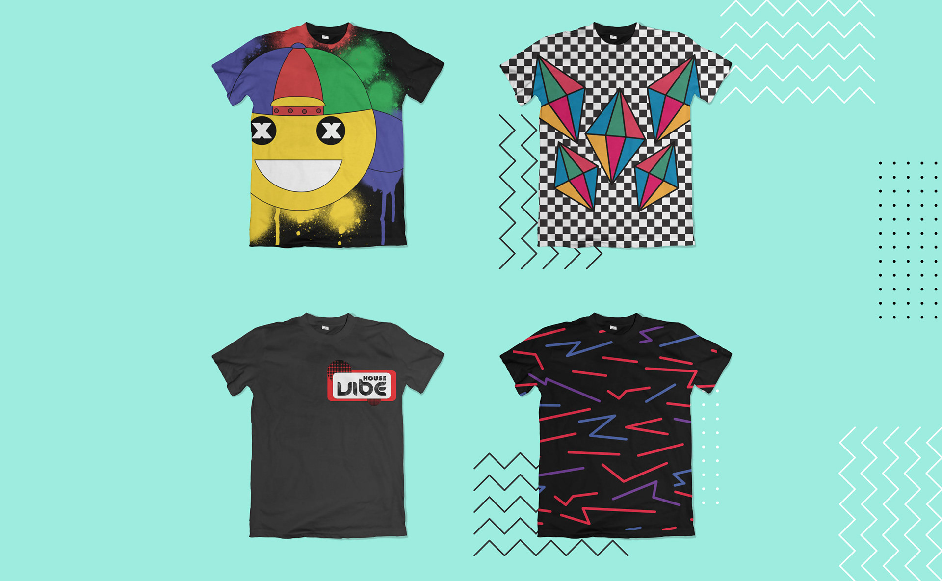 These are some graphic tee designs that were inspired by the style from the 90s.